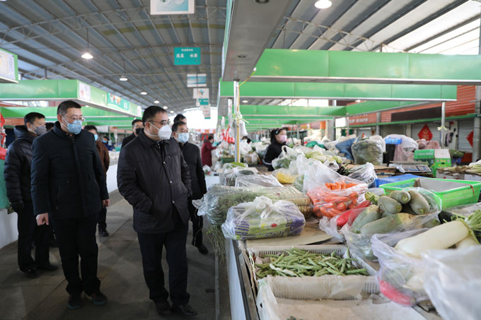 為及時掌握疫情,全面落實防控措施,堅決打贏疫情防控阻擊戰(zhàn)。1月30日下午,集團公司黨委書記、董事長楊龍,黨委副書記、總經(jīng)理胡建明,工會主席劉承志、總經(jīng)濟師陳如軍輕車簡從,到巨龍農(nóng)貿(mào)市場防疫第一線實地督導檢查,公司經(jīng)理孫政權、黨委副書記王志軍、副經(jīng)理伏運余、經(jīng)理助理朱兵陪同視察。