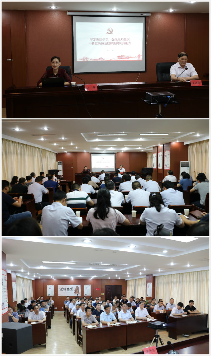 7月16日下午,集團公司紀(jì)委書記汪群在金橋房地產(chǎn)黨群服務(wù)中心會議室,為供電公司和房地產(chǎn)公司部分黨員講了一堂以“堅定理想信念,強化規(guī)矩意識,不斷提高廉潔自律拒腐防變能力”為主題,以黨風(fēng)廉政教育與反腐敗警示教育為主要內(nèi)容的專題黨課。雙方單位的領(lǐng)導(dǎo)班子成員、各基層單位班子成員、各部門負(fù)責(zé)人以及涉及招標(biāo)采購、工程建設(shè)、財務(wù)審計等崗位相關(guān)人員參加黨課。黨課由供電公司黨委書記吳再忠主持。