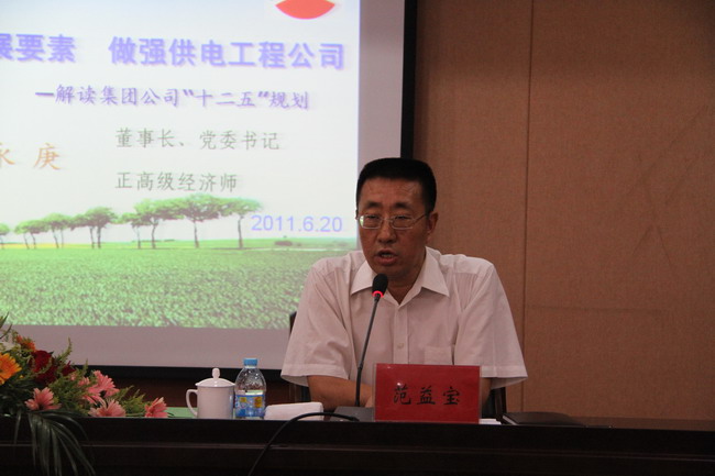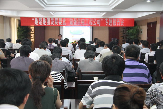 6月20日下午,集團(tuán)公司董事長、黨委書記顧永庚來到公司作了題為“集聚集團(tuán)發(fā)展要素,做強供電工程公司”的專題報告,報告會由公司總經(jīng)理、黨委書記范益寶主持。公司領(lǐng)導(dǎo)班子及副科級以上管理人員聆聽了報告。