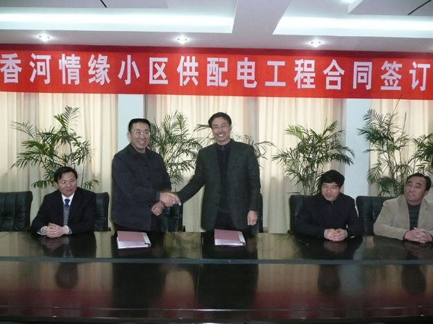 4月2日下午,我公司舉行“香河情緣”小區(qū)供配電工程簽字儀式。公司書記、經(jīng)理范益寶、副經(jīng)理徐開金、臺南鹽場場長陳汝軍、徐圩鹽場場長劉長兵、副場長郁洪軍以及公司和臺南鹽場有關(guān)部門負(fù)責(zé)人參加了簽字儀式?!跋愫忧榫墶毙^(qū)是集團(tuán)公司鹽場職工安居工程。此小區(qū)的建成使用,將大大改善臺南鹽場和徐圩鹽場職工居住條件。