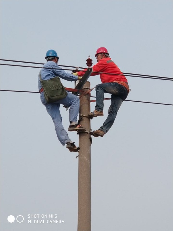 5月2日,張圩新農(nóng)村小區(qū)配電安裝工程施工現(xiàn)場,一根15米的電線桿上,榮獲集團(tuán)“技能大師”稱號的王建采用實踐教學(xué)的方法,親自為新員工祁明智做登桿、金具安裝、導(dǎo)線捆綁等示范操作,促其盡快掌握技術(shù)要領(lǐng)。