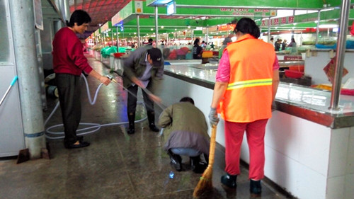 當(dāng)人們歡度國慶佳節(jié)之時(shí),公司巨龍農(nóng)貿(mào)市場全體職工卻是在創(chuàng)衛(wèi)工作現(xiàn)場度過的。