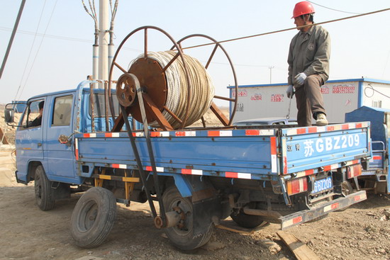 為解決這個(gè)難題,班組職工們自發(fā)地在一起探討研究,集思廣益,提出各種施工工具改進(jìn)意見(jiàn)。經(jīng)過(guò)多次試驗(yàn),最終確定了利用機(jī)動(dòng)車動(dòng)力帶動(dòng)放線架、取代人工放線的方法。改造后的放線設(shè)備收放線通用,人工操作與動(dòng)力操作兩用。在工程施工中實(shí)際操作驗(yàn)證,取得較好效果。