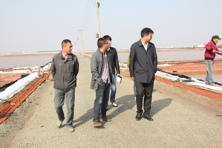 10月27日上午,王德志董事長深入日曬制鹽生產(chǎn)一線,就目前的原鹽生產(chǎn)的重點(diǎn)問題、一線生產(chǎn)現(xiàn)狀等進(jìn)行了調(diào)研,新河分公司、生產(chǎn)服務(wù)中心相關(guān)人員陪同調(diào)研。