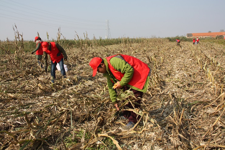 目前,位于柴門居民點附近的灌西實業(yè)公司農(nóng)田已進入作物收獲期,由于所種玉米已經(jīng)完全成熟,且經(jīng)歷了一次大風降溫天氣,所以在機械進場作業(yè)前,有部分玉米已經(jīng)掉落在了地上,如不及時撿拾,將造成極大浪費。公司團委在得知這一消息后,立即組織近十名青年志愿者利用中午休息時間,到該公司農(nóng)田開展撿拾散落玉米志愿服務活動?;顒又校蠹沂帜镁幙棿?,排成橫排仔細搜尋并緩慢向前推進。由于玉米皮與秸稈顏色相近且混雜在一起很難分辨,因此大家在撿拾過程中不僅需要認真搜尋,有時還需要彎腰翻動秸稈,以最大限度的不遺漏任何一個散落的玉米。