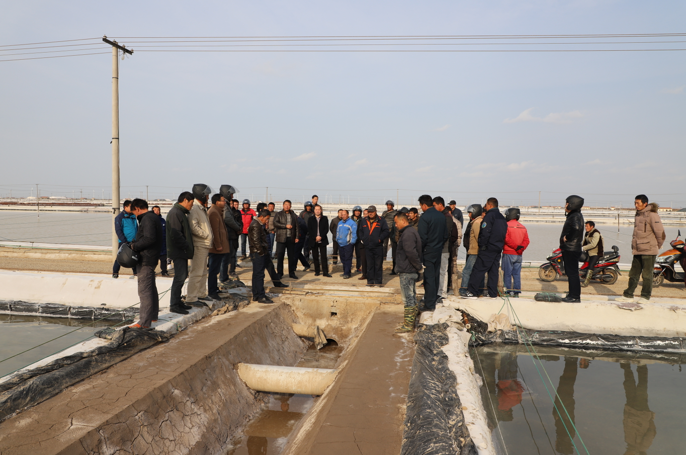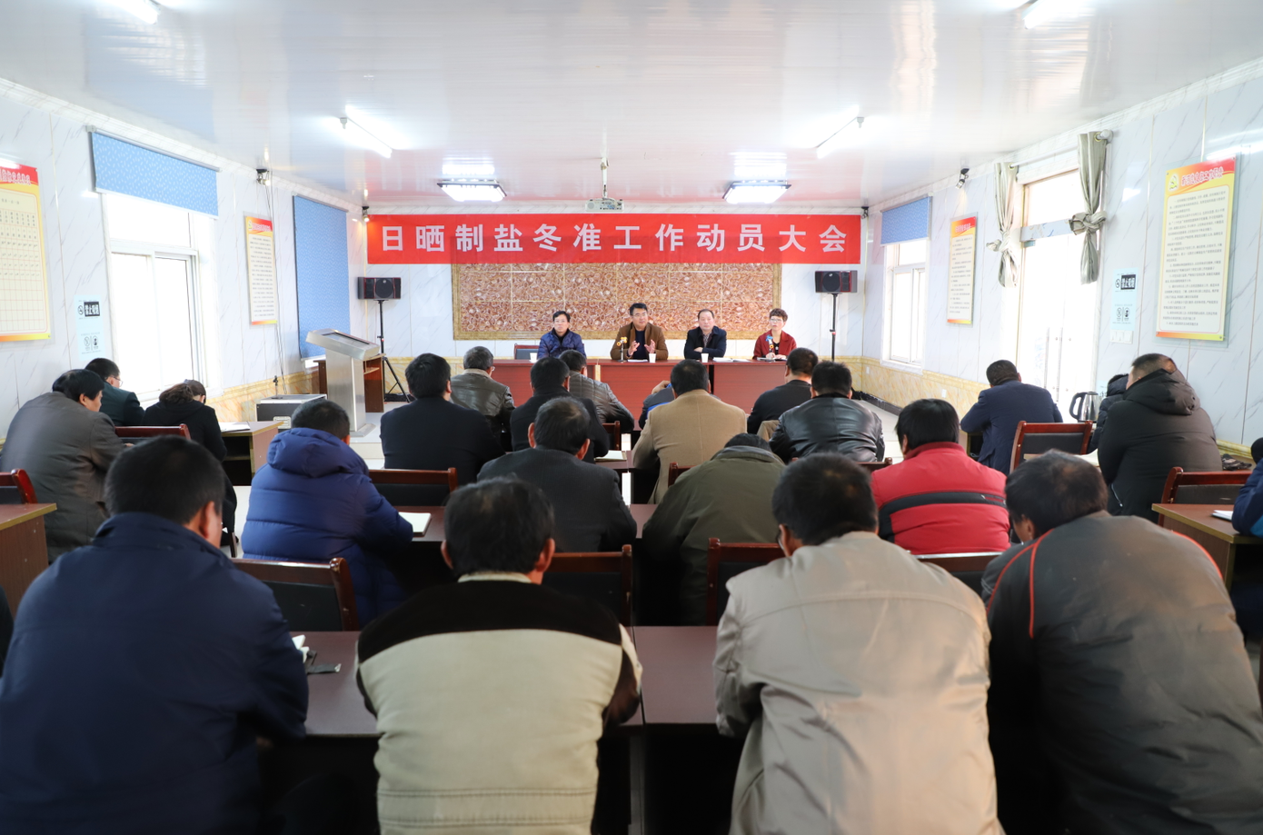 會(huì)前,與會(huì)人員一起現(xiàn)場參觀了新河制鹽分公司零班做格堰,三班清理硫酸鈣和土塘清淤等冬準(zhǔn)工作典型,隨后在生產(chǎn)服務(wù)公司會(huì)議室召開冬準(zhǔn)動(dòng)員大會(huì),會(huì)議對(duì)公司的冬準(zhǔn)工作進(jìn)行了全面部署,公司黨委書記、董事長王德志作形勢任務(wù)講話,總經(jīng)理李國文作動(dòng)員講話,副總經(jīng)理古浩光對(duì)冬準(zhǔn)工作提出要求,工會(huì)主席王宏宣讀了關(guān)于開展“大干冬準(zhǔn)勞動(dòng)競賽”活動(dòng)方案,新河、埒南制鹽分公司三名班組長就如何干好冬準(zhǔn)工作分別作表態(tài)發(fā)言。