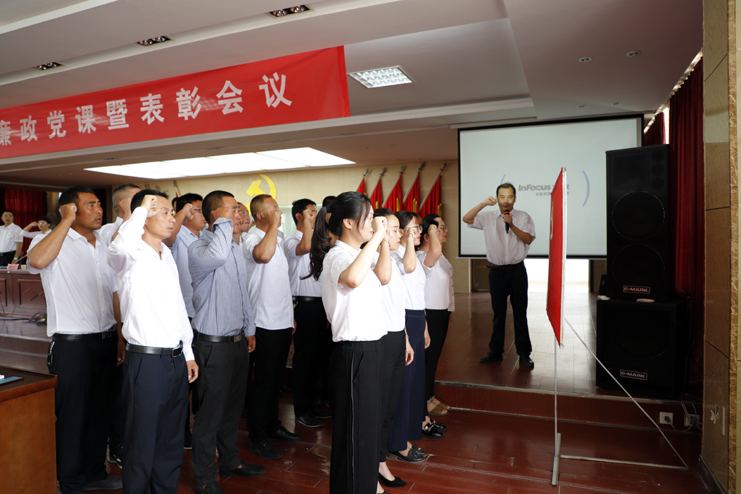 黨委書記、董事長、總經理李國文以《全面從嚴治黨推進企業(yè)高質發(fā)展》為題,深入講解了當前反腐斗爭形勢分析、新時期如何抓好國企黨風廉政建設、抓好意識形態(tài)工作推進全面從嚴治黨、黨員干部如何轉作風敢擔當保本色。李國文要求:全面從嚴治黨永遠在路上,廣大黨員干部要從我做起,從現在做起,拿出行動,身體力行,求真務實、真抓實干,不斷開創(chuàng)公司黨風廉政建設新局面,為決戰(zhàn)今年的“一高二進三爭創(chuàng)”目標任務提供堅強的紀律保障。