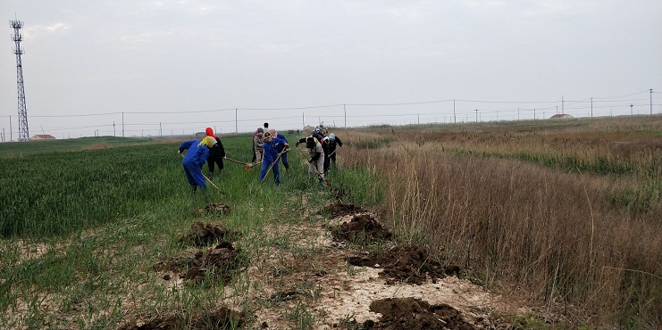 上午7點參加義務(wù)植樹活動的灌西投資公司、埒南制鹽分公司干部職工,共計200余人就來到了義務(wù)植樹地點。活動開始后,我們利用扒鹽用的管道車和平板車并通過人工將樹苗接力運到栽種的地方,然后由負(fù)責(zé)栽種的同事將一顆顆充滿生機和希望的樹苗植入坑內(nèi),樹苗栽種好后,同事們又為它們澆灌上生命之水,讓它們可以茁壯的成長。在栽種好此次活動的4000余株樹苗后,看著那一片自己親手種下的樹苗在微風(fēng)中搖曳,同事們無一不露出幸福的笑容,因為是大家付出的辛勤汗水為“綠色成果全民共享”播下了新綠。
