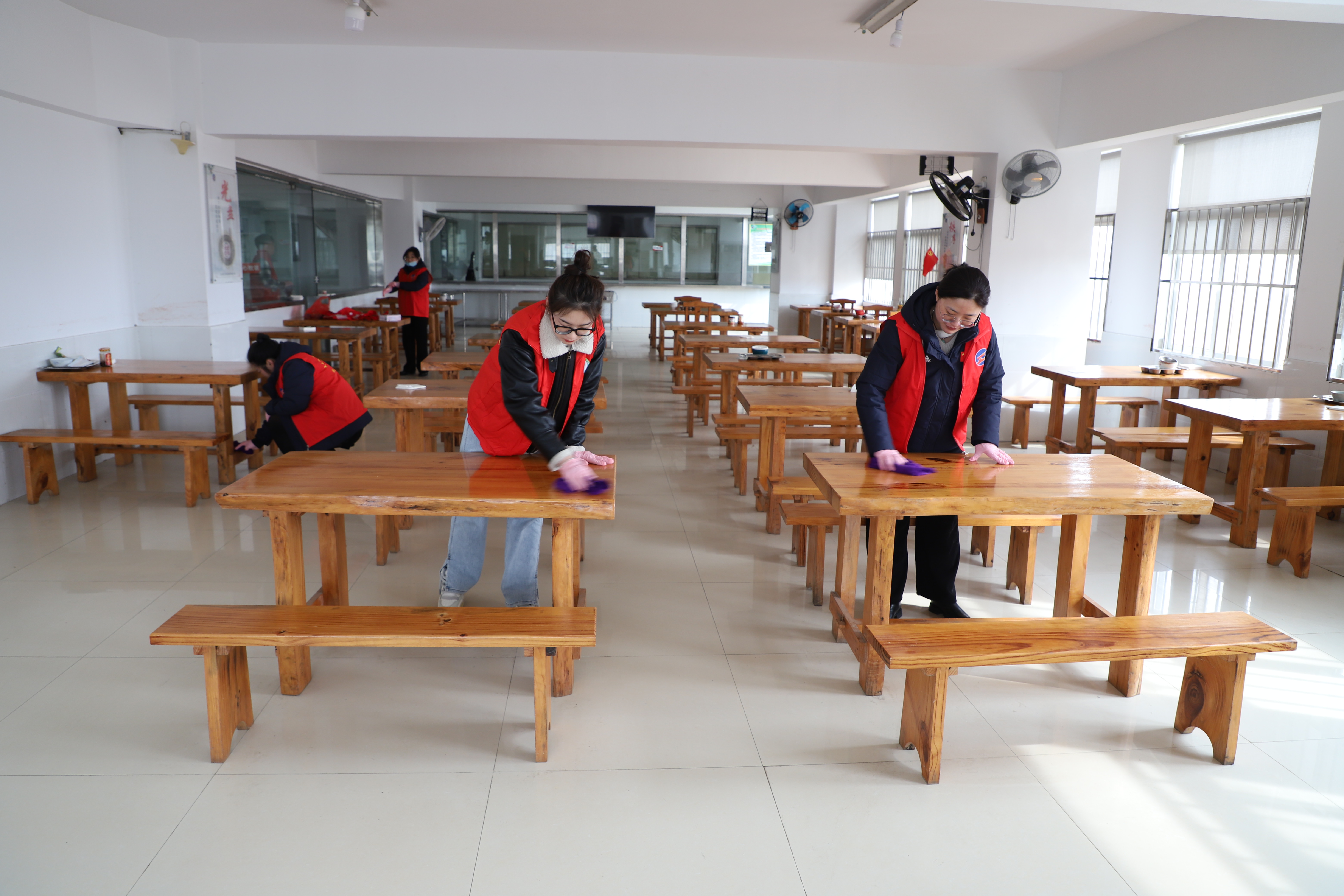 灌西青年志愿者助力維護(hù)食堂衛(wèi)生環(huán)境