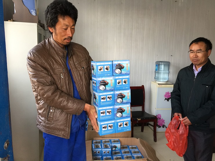 灌西工會為新河制鹽職工配置頭燈