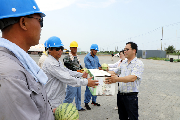 高溫籠罩下的碼頭暑氣蒸騰,灌西工會為碼頭工人送來了西瓜、白糖、綠豆、藥品等防暑降溫物品。并叮囑職工們要注意安全生產(chǎn),做好防暑降溫工作。(張明建)