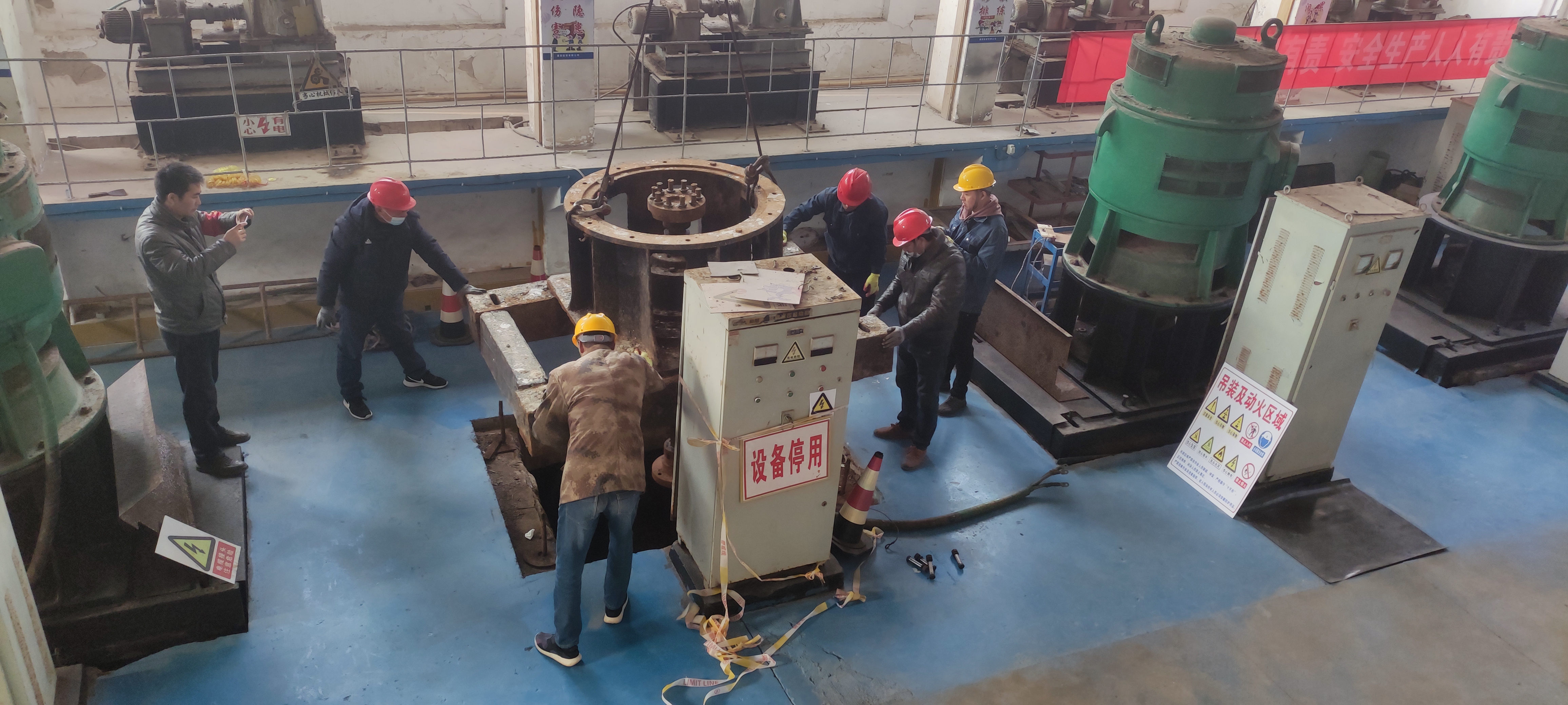 資源管理中心六圩閘揚水站一直承擔(dān)海水養(yǎng)殖池塘供水任務(wù)。殊不知四號機(jī)組長期滿負(fù)荷運行,導(dǎo)致四號機(jī)泵體出現(xiàn)損壞。當(dāng)前,正是養(yǎng)殖用水高峰期,為了保證養(yǎng)殖生產(chǎn)正常供水,資源管理中心立即召開會議,部署修泵工作安排,明確分工壓實責(zé)任,搶修機(jī)泵做到安全監(jiān)護(hù),確保潮汛來臨之前維修到位,夯實安全生產(chǎn)基礎(chǔ)。(資源管理中心)