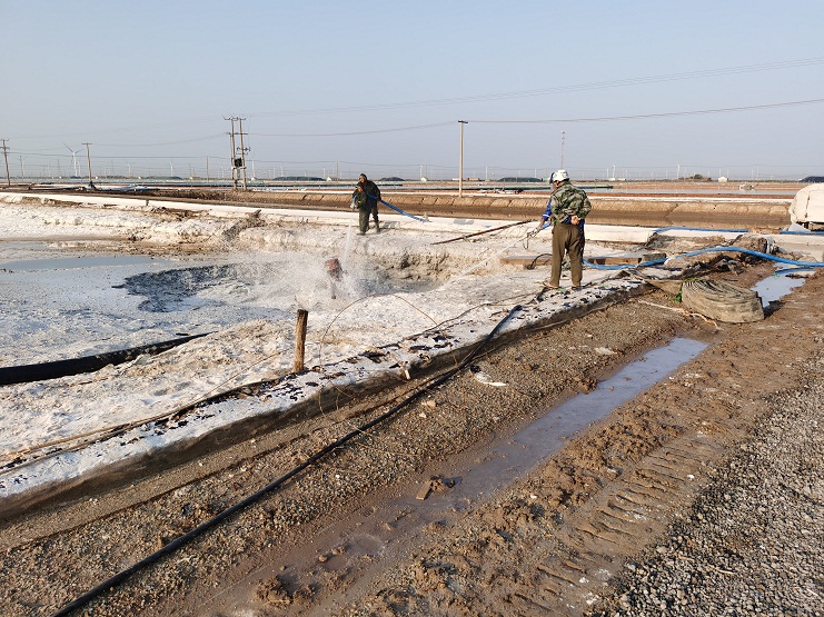 為保證班組生產(chǎn)工藝流程,提升原鹽品質,近日埒南公司按今年計劃分別對4個班進行硫酸鈣清理工作。預計11月底此項工作將全部結束。每塊除硫池將提升5000方左右的蓄鹵能力,可以達到多塊結晶池同時使用,讓班組的生產(chǎn)工作安排得到更好的調配。