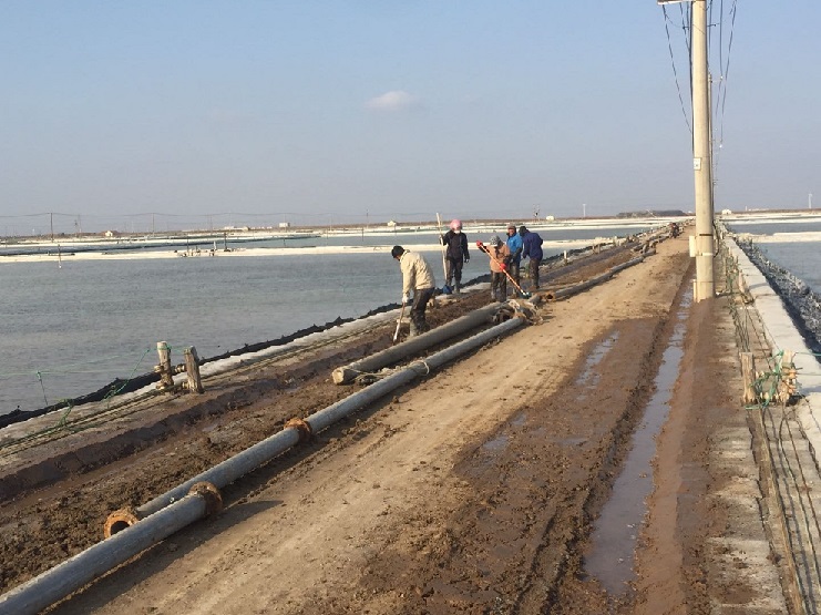 近日,日曬制鹽公司召開冬準(zhǔn)工作動員大會后,埒南制鹽分公司迅速精心組織展開冬準(zhǔn)各項工作。 目前,4臺清理硫酸鈣機(jī)組已全面出動,其余班組根據(jù)要求各班實際情況陸續(xù)開始整理池埝、下馬格、廩基、排鹵溝道、門面溝和灘場文明等,為明年生產(chǎn)工作打下堅實基礎(chǔ)。