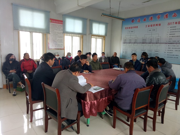 該公司經(jīng)理何正軍首先對(duì)本單位員工提了幾點(diǎn)要求:1、在實(shí)業(yè)公司范圍內(nèi),禁止一切養(yǎng)殖活動(dòng);2、關(guān)于員工的請假制度;3、單位生產(chǎn)物資的管理。之后由書記沈玉波宣傳場投資公司及工會(huì)開展的“拼搏二季度、實(shí)現(xiàn)雙過半”勞動(dòng)競賽的要求,學(xué)習(xí)李國文董事長的講話:一、認(rèn)清形勢、正視不足;二、明確目標(biāo),狠抓干勁;三、嚴(yán)明紀(jì)律,團(tuán)結(jié)拼搏,大干不忘安全。沈書記安排了全年各班組制鹵目標(biāo)任務(wù):海鹽基地一班,14000方;二班,24000方;三班,12000方。布置了二季度工作,并帶領(lǐng)大家簡要學(xué)習(xí)了《中華人民共和國監(jiān)察法》。最后海鹽基地的班組長簽訂了承諾書、全年目標(biāo)責(zé)任書。(史祥燕)
