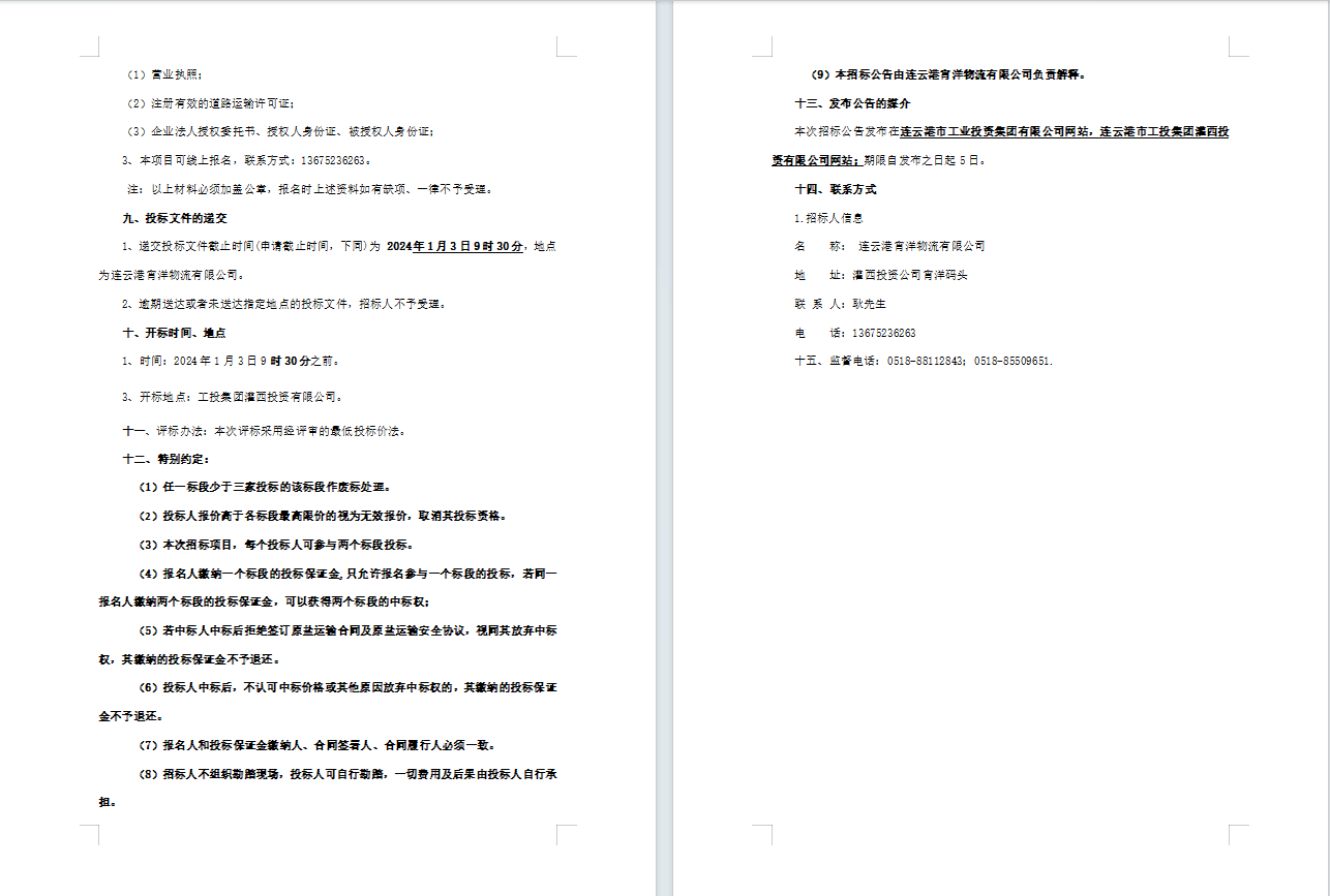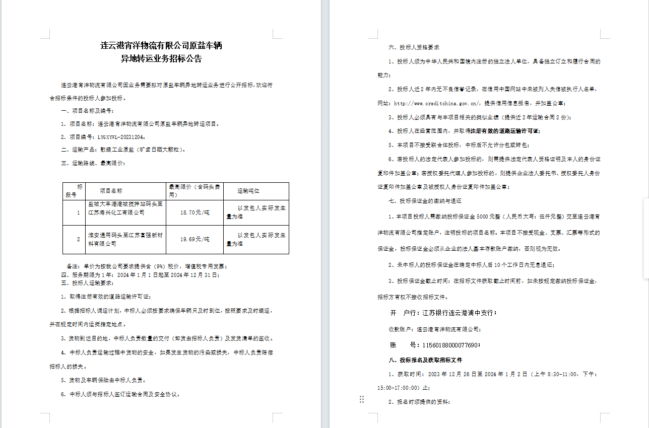 連云港宵洋物流有限公司原鹽車輛異地轉(zhuǎn)運(yùn)業(yè)務(wù)招標(biāo)公告