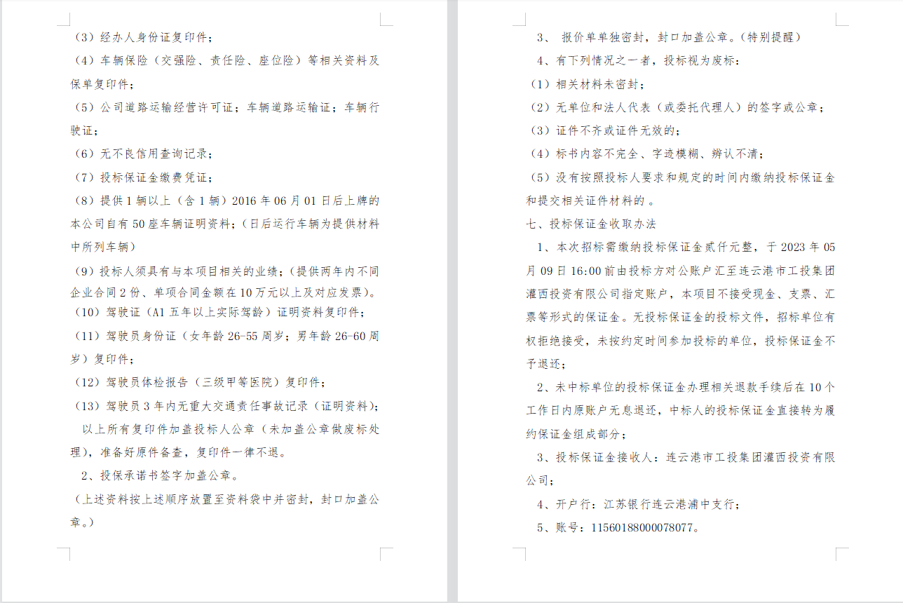 連云港市工投集團灌西投資有限公司 員工上下班通勤車輛租賃項目二次招標(biāo)公告