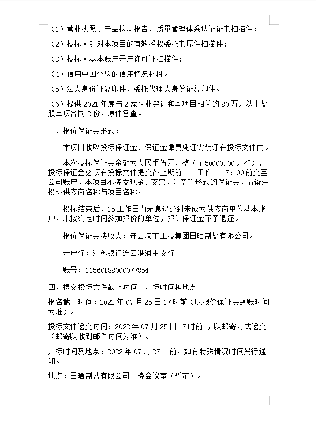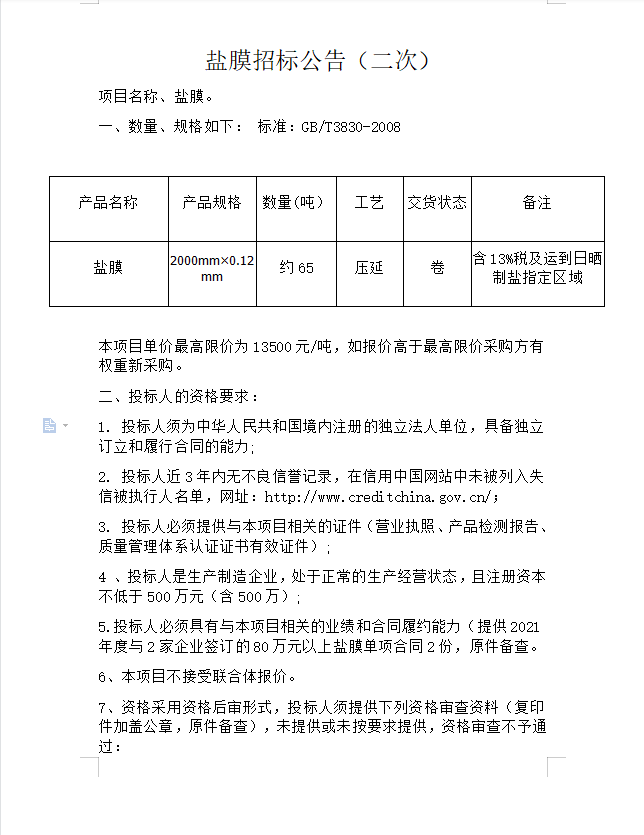 鹽膜招標(biāo)公告(二次)