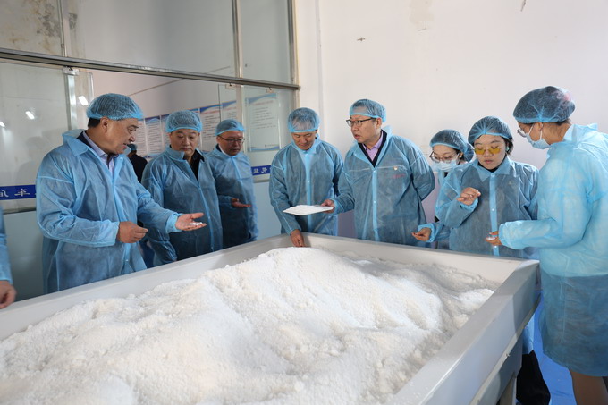 10月13日上午,蘇鹽協(xié)會(huì)副理事長(zhǎng)伏運(yùn)景帶領(lǐng)省戰(zhàn)略與發(fā)展研究中心及省經(jīng)濟(jì)和信息化研究院相關(guān)研究人員一行,到我公司開展編撰省鹽行業(yè)年度發(fā)展報(bào)告相關(guān)企業(yè)調(diào)研。集團(tuán)公司黨委委員、總會(huì)計(jì)師匡友本,我公司主要領(lǐng)導(dǎo)陪同調(diào)研。伏運(yùn)景一行參觀了公司雪花鹽車間、包裝鹽車間,聽取公司基本情況和發(fā)展情況介紹。伏運(yùn)景對(duì)我公司充分重視本次調(diào)研工作表示感謝,肯定了鹽改以來(lái)我公司先導(dǎo)性發(fā)展經(jīng)驗(yàn)和成就。(金宣)