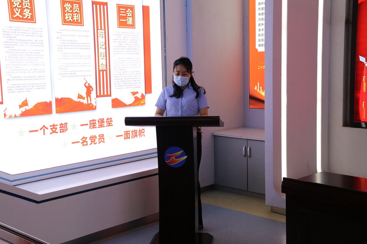 隨后,支部書(shū)記徐兵為大家上了一堂題為“增強(qiáng)黨性修養(yǎng),筑牢使命擔(dān)當(dāng)”的專題黨課,他結(jié)合黨的歷史及當(dāng)前國(guó)內(nèi)國(guó)際局勢(shì),生動(dòng)的闡釋黨的革命精神和光輝歷程,旨在讓新黨員感受到了黨的神圣,進(jìn)一步激發(fā)黨員的愛(ài)國(guó)熱情和奮斗精神,激勵(lì)廣大黨員黨員以自身的實(shí)際行動(dòng)積極實(shí)踐誓詞,這堂黨課對(duì)于新老黨員們來(lái)說(shuō),都是一次寶貴的學(xué)習(xí)機(jī)會(huì)。黨課最后,支部書(shū)記徐兵帶領(lǐng)新老黨員一起,面向鮮紅的黨旗,舉起右拳,重溫入黨誓詞。