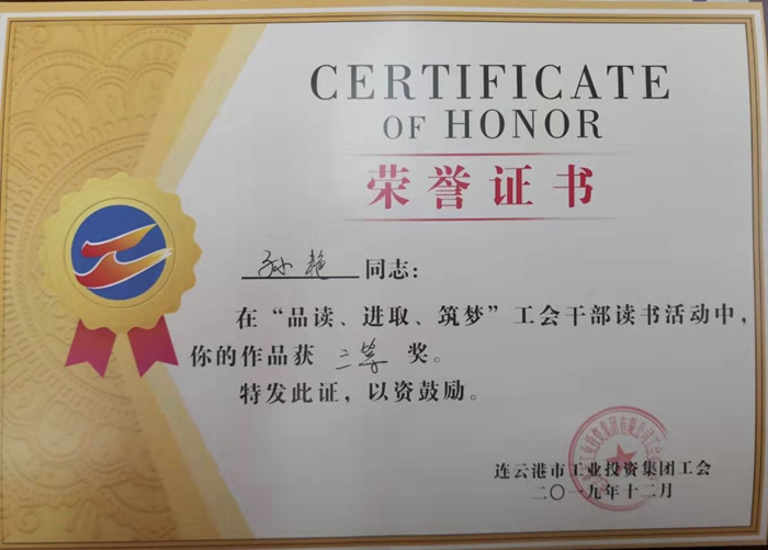 ????在集團(tuán)公司工會“品讀、進(jìn)取、筑夢”主題讀書活動中,孫艷同志憑借《光輝的思想 指路的明燈 讀<毛澤東詩詞全編鑒賞>有感》,獲得三等獎。