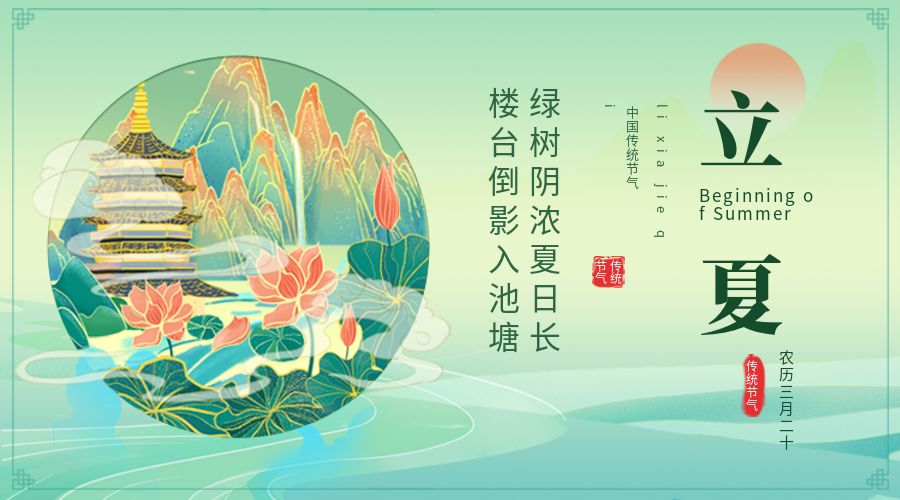 歷書有云 :“斗指東南,維為立夏,萬物至此皆長大,故名立夏也?!绷⑾闹?,是萬物的驚蟄與蘇醒;立夏之后,萬物舒展,悠然通暢。立夏,標志著季節(jié)的轉(zhuǎn)換?!傲ⅲㄊ家病?,春天歸去,夏天開始了。
