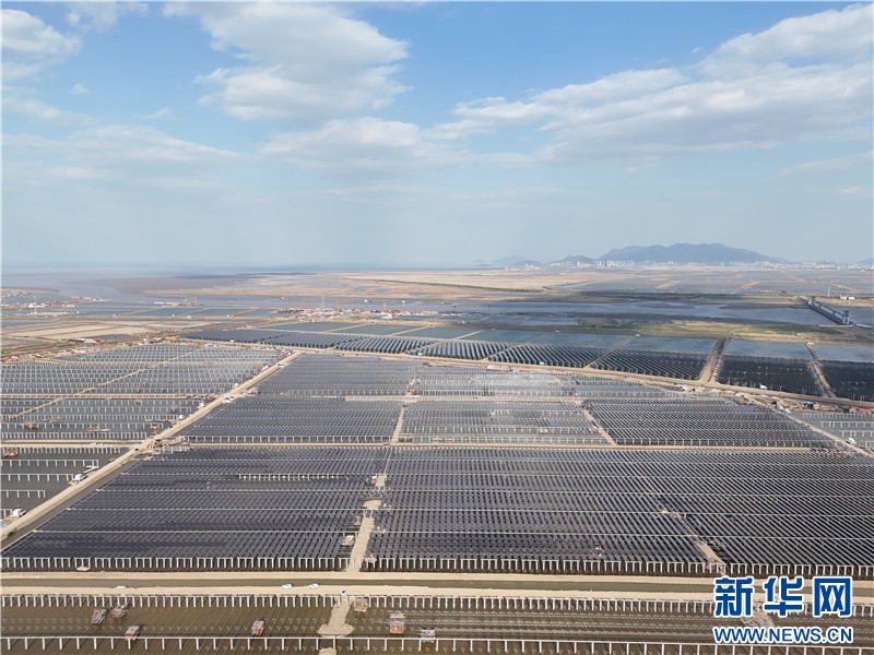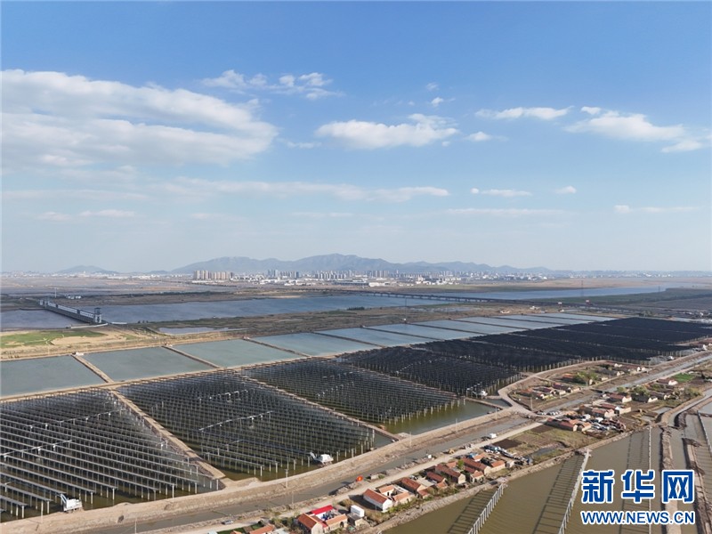 近日,在連云港經(jīng)濟(jì)技術(shù)開發(fā)區(qū)猴嘴街道三峽青口鹽場,近78萬塊光伏板如波浪般起伏,深藍(lán)色板面倒映著魚塘的波光,蔚為壯觀。