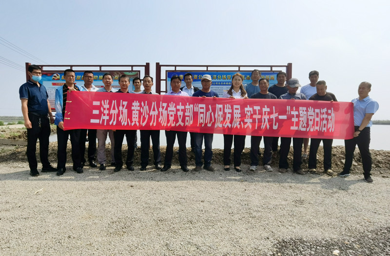 在“同心促發(fā)展 實干慶七一”主題黨日活動現(xiàn)場中,三洋分場、黃沙分場黨支部邀請長期在全國從事漁業(yè)科技服務的珠江水產(chǎn)研究所彭勇鰲工程師,深入到池塘的養(yǎng)殖一線,查看、詢問養(yǎng)殖戶們在養(yǎng)殖過程中遇到的難題,并有針對性地做出養(yǎng)殖新技術幫扶和推廣志愿服務活動,為養(yǎng)殖戶們排憂解難,不斷提高養(yǎng)殖效益。