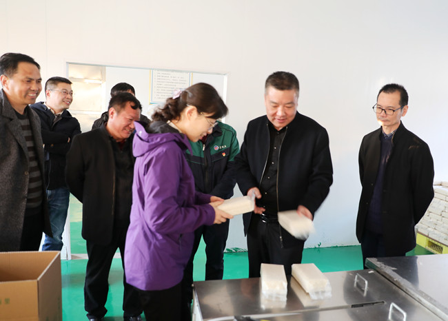 新米上市,線上線下同步火爆銷售,“鹽田玉”大米生產(chǎn)加工車間有條不紊忙碌著,流水線上的工人們,熟練的將大米裝袋、封口、堆碼整齊。青口公司史書記向汪書記一行,詳細(xì)介紹大米的生產(chǎn)、銷售、市場行情,并匯報(bào)明年新產(chǎn)品開發(fā)和產(chǎn)線延伸思路,汪書記給予充分肯定,并強(qiáng)調(diào)三點(diǎn):一是做好大米銷售運(yùn)輸同時(shí),提高防范意識,做好疫情防控工作;二是結(jié)合線上線下資源,做好品牌營銷工作;三是深入調(diào)研,提前謀劃,做好新產(chǎn)品開發(fā)工作。