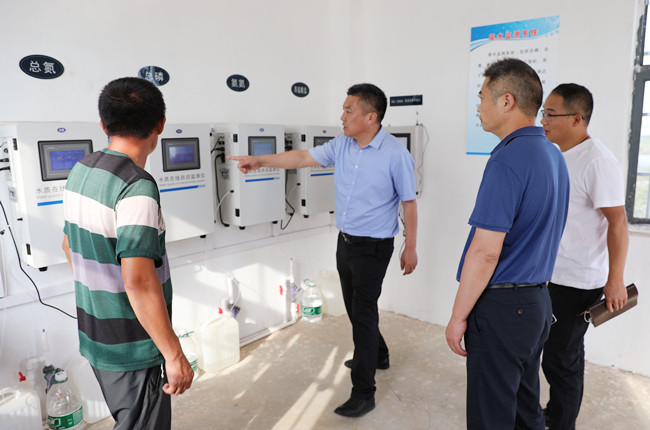 在黃海養(yǎng)殖場,史董認(rèn)真聽取養(yǎng)殖場負(fù)責(zé)同志對尾水處理工藝的介紹,詳細(xì)了解黃海養(yǎng)殖場物聯(lián)網(wǎng)平臺、污水處理流程、水質(zhì)信息采集與監(jiān)測系統(tǒng)等,并實地考察了尾水處理監(jiān)測室、污水循環(huán)處理設(shè)施、人工濕地生態(tài)系統(tǒng)等,就污水處理工程設(shè)計施工、污水監(jiān)測指標(biāo)、養(yǎng)殖生產(chǎn)用水等問題與養(yǎng)殖場負(fù)責(zé)同志進(jìn)行了深入的探討與交流。
