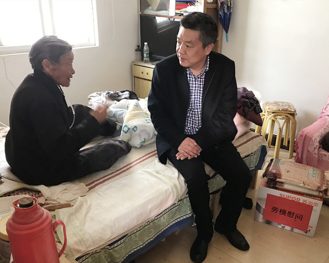 ? ? 公司黨委副書記、工會主席梁永帶領(lǐng)工會人員,走訪慰問了勞模莫西鑾。(青工)