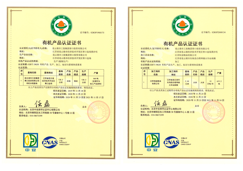 我公司獲得國家有機(jī)產(chǎn)品認(rèn)證證書