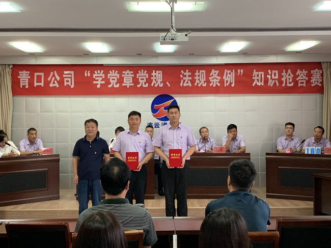 推動黨員干部進一步掌握基本標準,增強黨的意識、黨員意識、紀律意識,更好地堅守初心、踐行使命,623日上午,青口公司舉辦“學黨章黨規(guī)、法規(guī)條例”知識搶答賽活動。來自公司8個支部的24名選手參加了比賽。公司黨委班子成員出席了活動。機關全體管理人員、各單位黨政工負責人到場觀看。