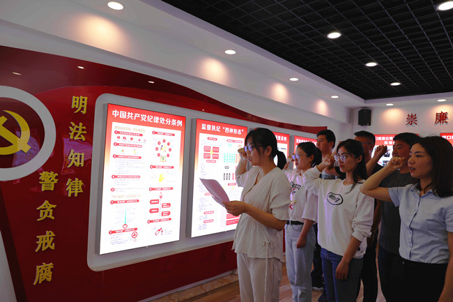 會(huì)后,全體談話人員右手舉拳,作出莊嚴(yán)承諾,表示會(huì)在新的崗位上自覺(jué)遵守黨規(guī)黨紀(jì),嚴(yán)于律己,忠于職守,以實(shí)際行動(dòng)為企業(yè)發(fā)展貢獻(xiàn)力量。新提拔及交流人員進(jìn)行了廉政知識(shí)測(cè)試并遞交了《黨員干部廉潔從業(yè)承諾書(shū)》。(瞿 方)