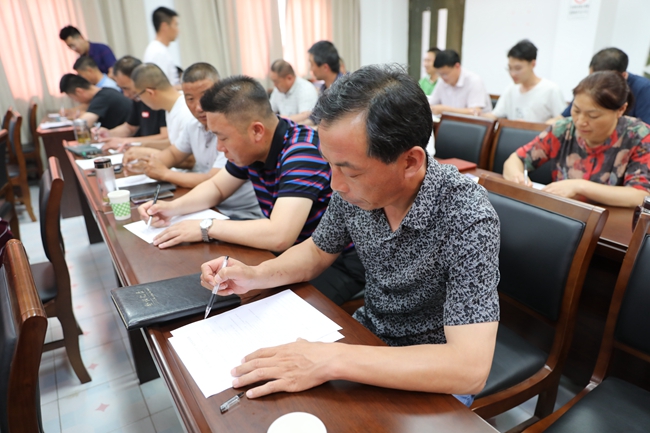 培訓(xùn)結(jié)束后,全體人員參加安全知識(shí)隨堂測(cè)驗(yàn)。 (顧 益)