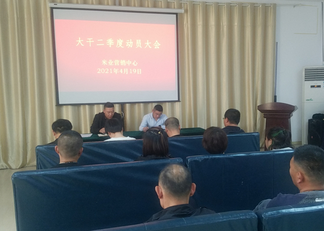 ? ? ? ?4月19日,米業(yè)營銷中心召開大干二季度動員大會,進一步貫徹落實投資公司二屆一次職代會暨第二次工代會會議精神,結(jié)合“崗位建新功、創(chuàng)效爭一流”大干二季度勞動競賽,規(guī)劃部署米業(yè)全年工作,分解全年銷售任務,以分解量化的季度指標,以月保季、以季保年,緊扣工作目標,明確責任分工,凝心聚力,共謀發(fā)展。