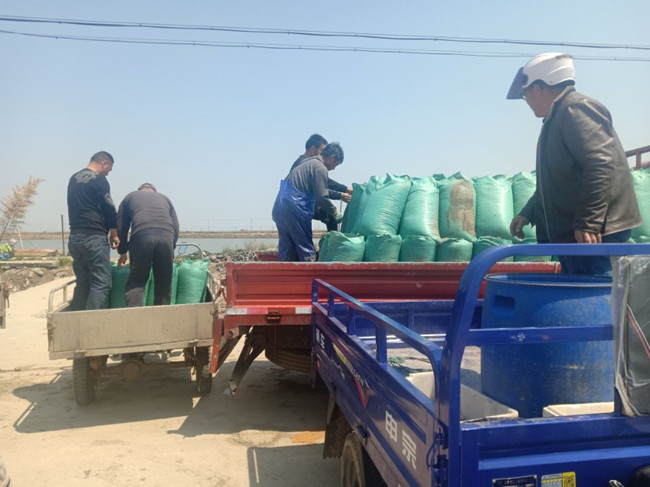 隨著氣溫日漸升高,三洋分場(chǎng)境內(nèi)養(yǎng)殖戶(hù)們紛紛忙碌起來(lái),部分完成了梭子蟹、東方對(duì)蝦苗種投放工作的養(yǎng)殖戶(hù)池塘,開(kāi)始投喂鮮活的海沙餌料。據(jù)了解,今年海沙單價(jià)約2/每斤,較去年同期偏高。(劉洪文)