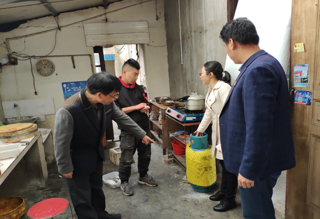 20191014日上午,服務中心聯(lián)合社區(qū)工作人員對轄區(qū)餐飲店進行液化燃氣安全專項檢查,仔細檢查液化氣鋼瓶、管道、減壓閥及燃氣灶安全使用情況,要求從業(yè)人員一定要按照規(guī)定操作流程正確使用燃氣設備,并告知他們對銹蝕、過期、老化的燃氣設備部件必須及時更新更換,以確保用氣的安全。(徐永平)