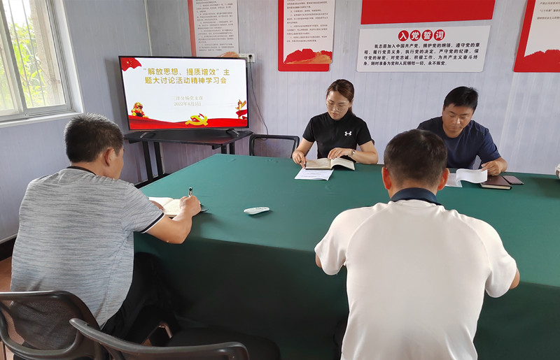 ? ? ? ?8月5日上午,三洋分場(chǎng)黨支部在分場(chǎng)黨建活動(dòng)室,召開(kāi)“解放思想 提質(zhì)增效”主題大討論活動(dòng)精神學(xué)習(xí)會(huì)。