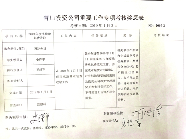 【表單考核】青口投資公司重要工作專項(xiàng)考核獎(jiǎng)懲表