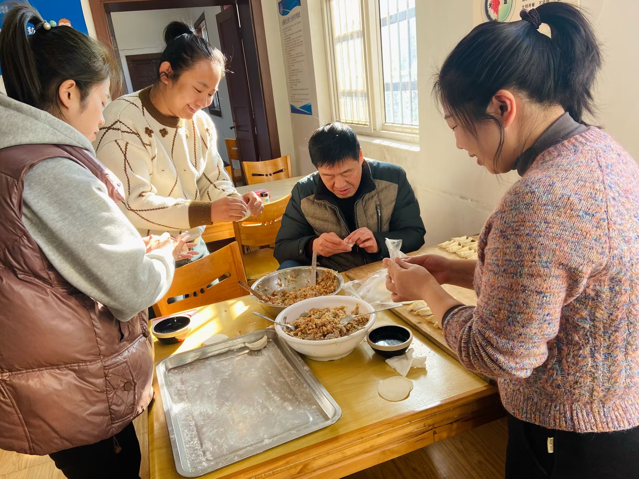 ? ? ? ?活動(dòng)現(xiàn)場熱鬧非凡,食堂早早為職工們備好了餃子餡兒和餃子皮,大家有說有笑,配合默契,有的負(fù)責(zé)拌餃餡、有的負(fù)責(zé)包餃子,忙得好不熱乎。大家一邊嘮著家常,一邊互相切磋包餃子的技巧,對(duì)比著各自餃子不同的形狀,有人包的是元寶狀,有人包的是小船狀,在一陣陣歡聲笑語中,口味不一的餃子就這樣展現(xiàn)在大家面前。當(dāng)一盤盤熱氣騰騰的餃子端上桌,食堂瞬間香飄四溢,能夠共同制作美食,吃著自己親手包的餃子,大家紛紛表示,今冬過上一個(gè)不一樣的冬至,感受到了“大家庭”的溫馨。