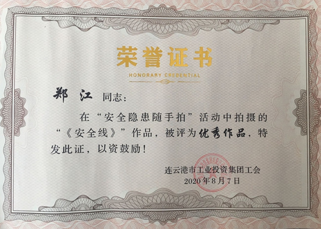? 喜訊,我公司工會(huì)在集團(tuán)公司開(kāi)展的“安全隱患隨手拍”活動(dòng)中,獲得集體及個(gè)人表彰。