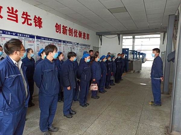 為加強(qiáng)規(guī)范化管理,近日,公司制定生產(chǎn)班組班會(huì)開會(huì)流程,規(guī)定班組員工按指定區(qū)域點(diǎn)位有序站好、著裝整齊、動(dòng)作劃一。通過(guò)該項(xiàng)措施,有效改善生產(chǎn)班組員工開會(huì)時(shí)“松、散、懶”形象,提起振奮,提勁實(shí)干。