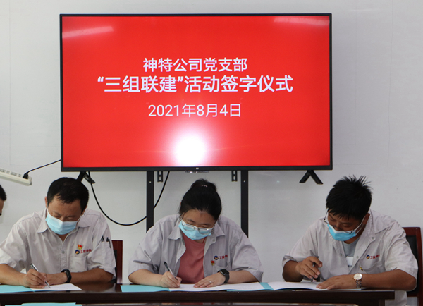 8月4日上午,公司舉行“三組聯(lián)建”活動(dòng)簽字儀式,黨小組、生產(chǎn)班組、工會(huì)小組的組長(zhǎng)參加活動(dòng)。活動(dòng)由公司黨支部副書記袁忠主持。