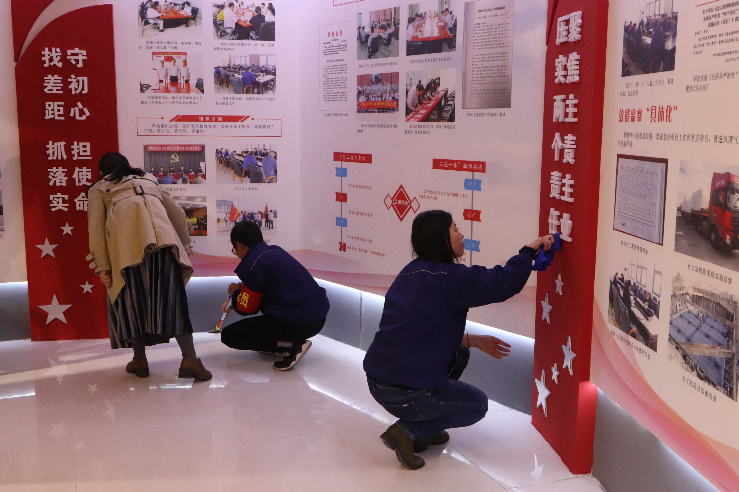 為進(jìn)一步提升“不忘初心、牢記使命”主題教育實(shí)效, 10月25日,公司組織全體黨員開(kāi)展主題黨日活動(dòng)?;顒?dòng)中,組織黨員學(xué)習(xí)收看專題節(jié)目《榜樣4》,聆聽(tīng)榜樣故事,汲取榜樣力量,接受精神洗禮。組織黨員開(kāi)展志愿服務(wù)活動(dòng),打掃多功能展廳,黨員們干得熱火朝天、汗流浹背,充分發(fā)揮了黨員的先鋒模范作用。(神特宣)
