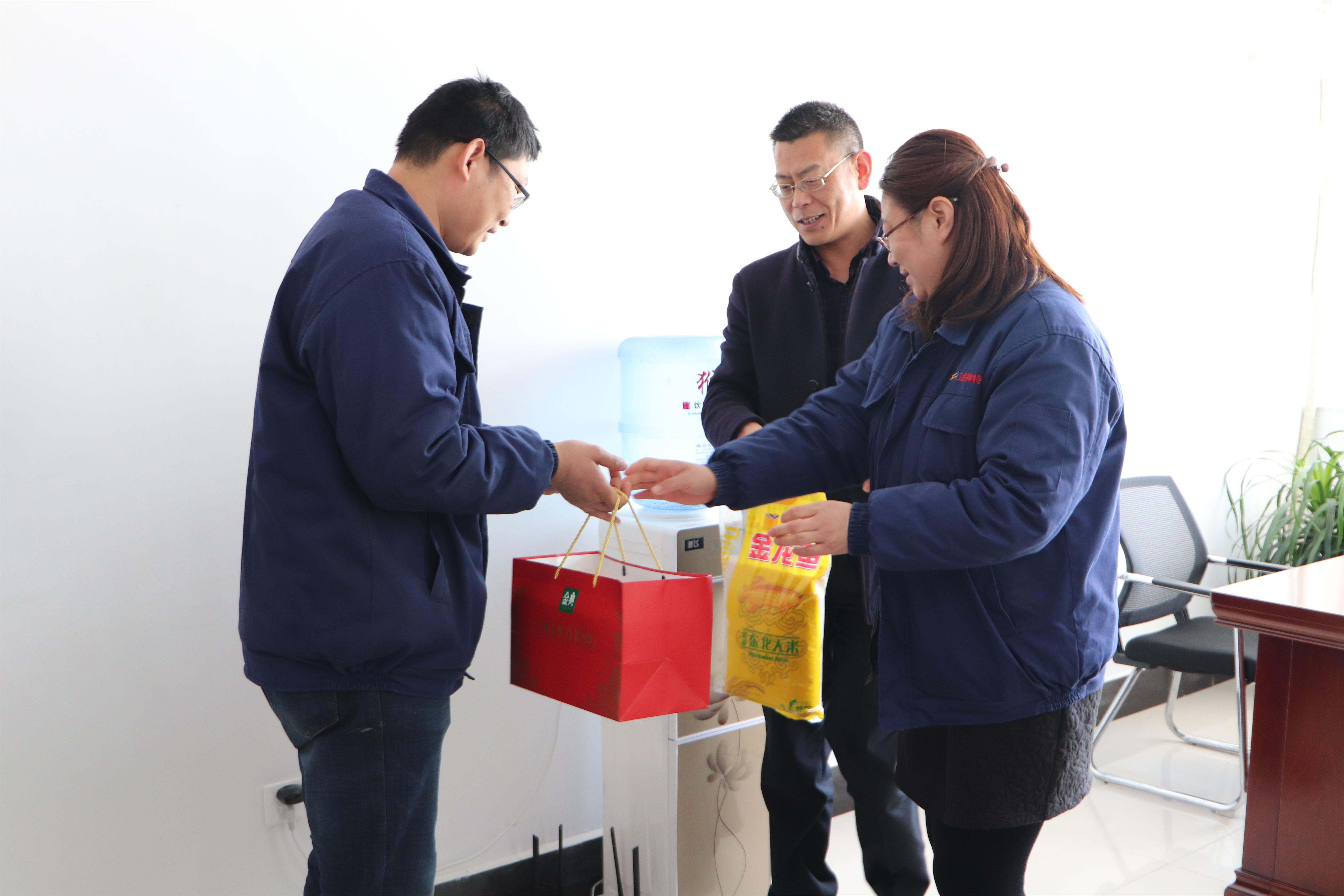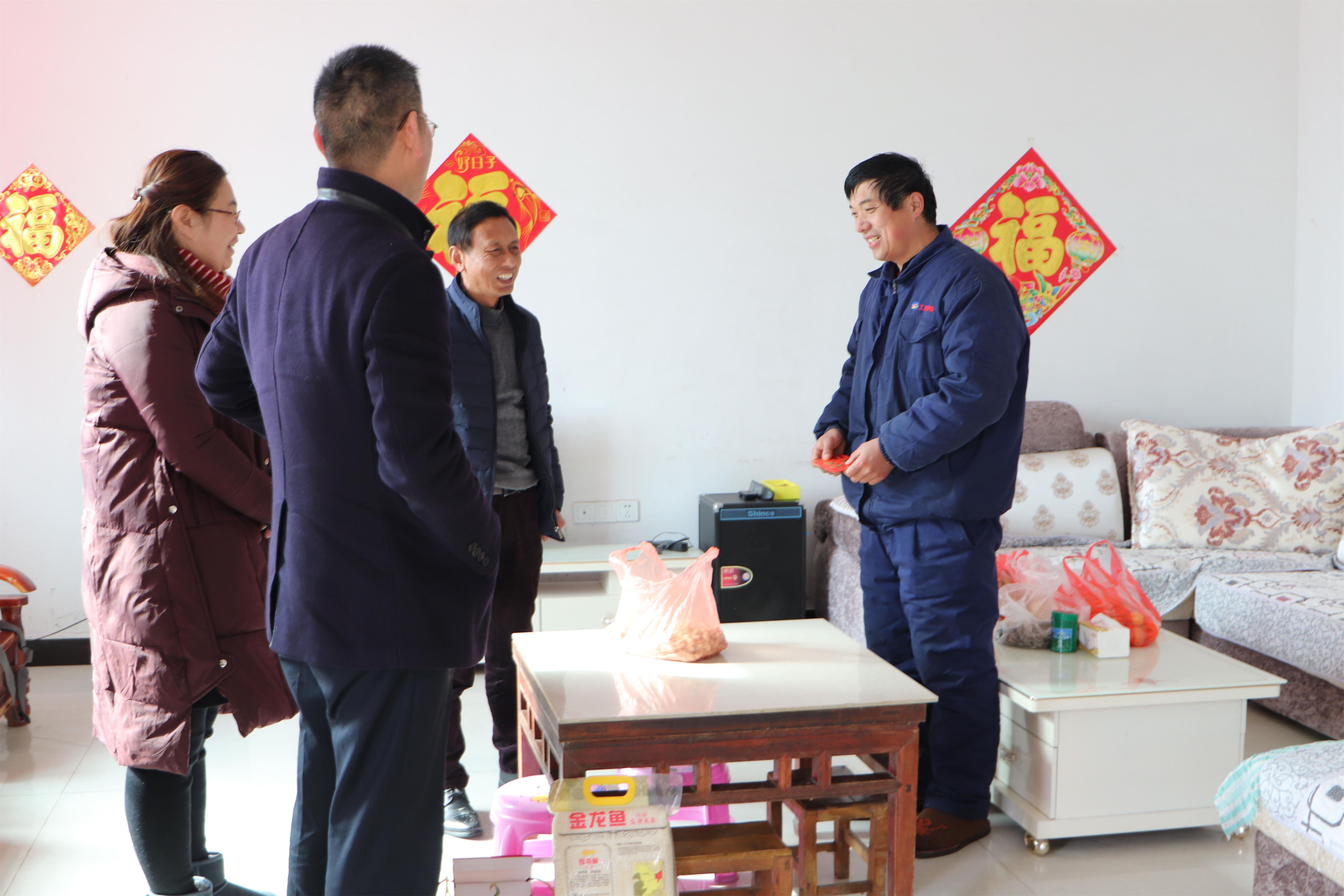 1月31日下午,公司黨支部書(shū)記鄒德兵、副總經(jīng)理王爽芳、工會(huì)主席袁忠一行走進(jìn)困難職工孫英山等家中,為他們帶去節(jié)日的祝福和公司的關(guān)懷。