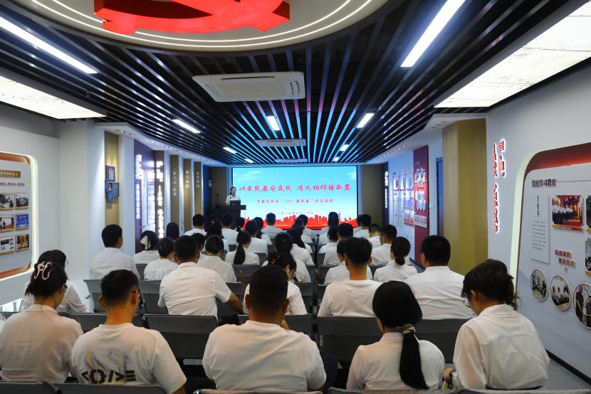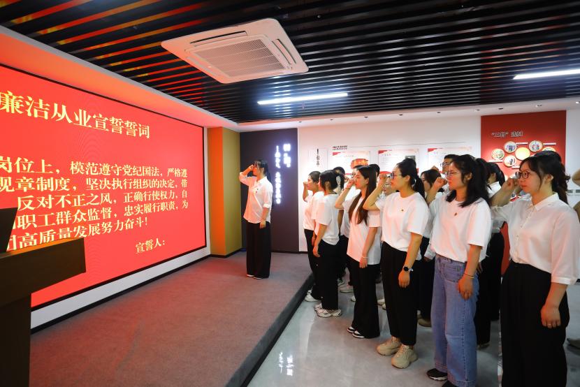 在臺北(華茂)公司環(huán)保裝備產(chǎn)業(yè)園,參加活動人員先后參觀了臺北黨員自繪的廉潔漫畫作品、廉潔教育室。隨后,青年黨員代表進行了廉潔從業(yè)宣誓,集中觀看了近年來臺北(華茂)公司自拍自導自演的優(yōu)秀廉潔文化微視頻、微電影。