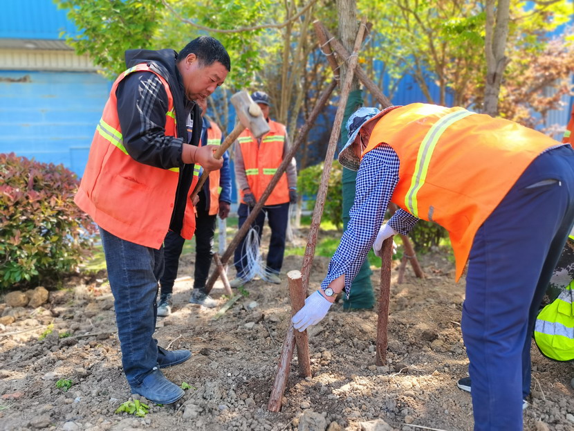 在中科院,只見工程車輛來來往往、橙色身影忙忙碌碌……到處都是一派繁忙、紅紅火火的景象。闖將孫玉虎,虎將金華穿梭在工程現(xiàn)場,親自指揮調度綠化工程收尾工作。大家分工有序:定點劃線、搬運苗木、栽植澆水、垃圾清理……有條不紊。中午時分,熾熱的陽光照在臉上也是火辣辣的,忙碌了一上午的工人大汗淋漓,擰開瓶蓋,咕嚕咕嚕喝了幾大口涼水,用袖子蹭了下額頭的汗,又干勁十足地投入到工作中。