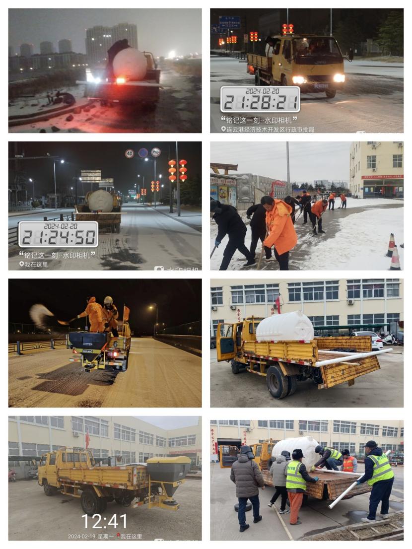 ? ? 戰(zhàn)斗到深夜,氣溫越來(lái)越低,在去鈣液儲(chǔ)備點(diǎn)抽取鈣液時(shí),幾個(gè)人都已經(jīng)凍僵了,但是為了第二天人們的安全出行,他們不顧寒冷依然一次又一次往返于花果山大道和鈣液儲(chǔ)備池之間吸取鈣液為道路除冰做貢獻(xiàn)。一直忙到第二天早上天亮,他們用自己的無(wú)私付出方便了廣大市民出行。讓我們一起為他們點(diǎn)贊!