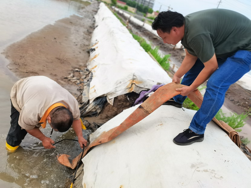 先鋒泵站,程輝師傅撩起工作服擦了擦臉上的汗水,繼續(xù)將潛水泵安置到已廢棄的灘地里,把灘地里的雨水抽干,將廢棄的灘地利用起來晾曬低濃度的鈣液,解決銷售旺季成品鈣液供不應求難題。